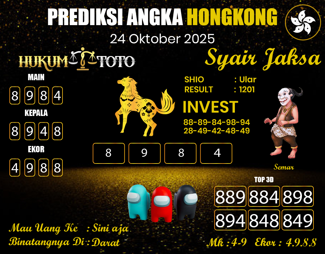 Mencari angka jitu keluaran hongkong lotto di Prediksi HukumToto terus-menerus selalu dapat membantu banyak bettor. Lantaran, bukan cuma siapkan result togel dan prediksi togel yang komplet dari beberapa pasaran, di Prediksi HukumToto pula kalian dapat mendatangkan atau menganalisis buku mimpi togel, di mana semasing tipe mimpi yang pas abjad diartikan pada tipe angka. Baik itu buku mimpi 2D, 3D hingga sampai 4D.