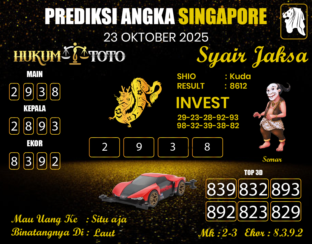 Mencari angka jitu keluaran singapore di Prediksi HukumToto terus-menerus selalu dapat membantu banyak bettor. Lantaran, bukan cuma siapkan result togel dan prediksi togel yang komplet dari beberapa pasaran, di Prediksi HukumToto pula kalian dapat mendatangkan atau menganalisis buku mimpi togel, di mana semasing tipe mimpi yang pas abjad diartikan pada tipe angka. Baik itu buku mimpi 2D, 3D hingga sampai 4D.